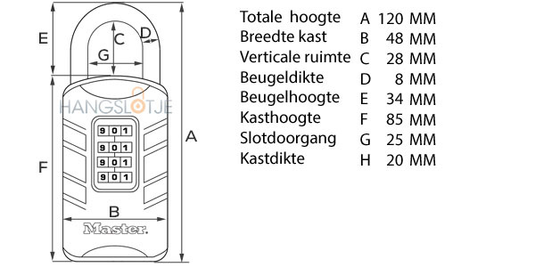 Cijferhangslot met herstelsleutel - zelf-instelbare cijfercode - Zware uitvoering
