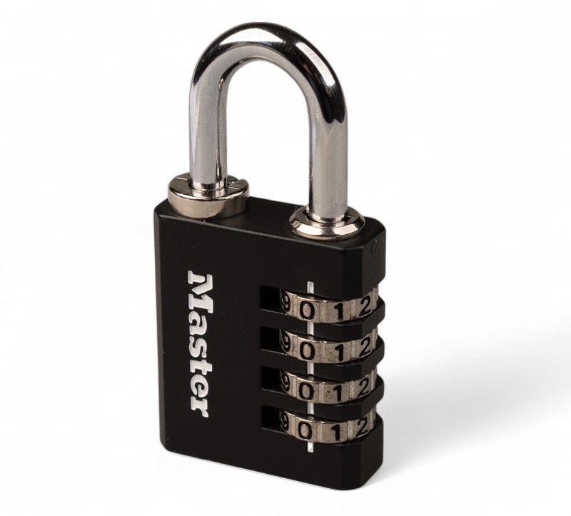 Zwart 40mm instelbaar combinatieslot met herstel sleutel van het merk Masterlock. Ideaal voor sportscholen, scholen etc.