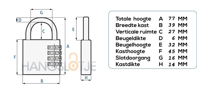 Cijferhangslot met herstelsleutel - zelf-instelbare cijfercode