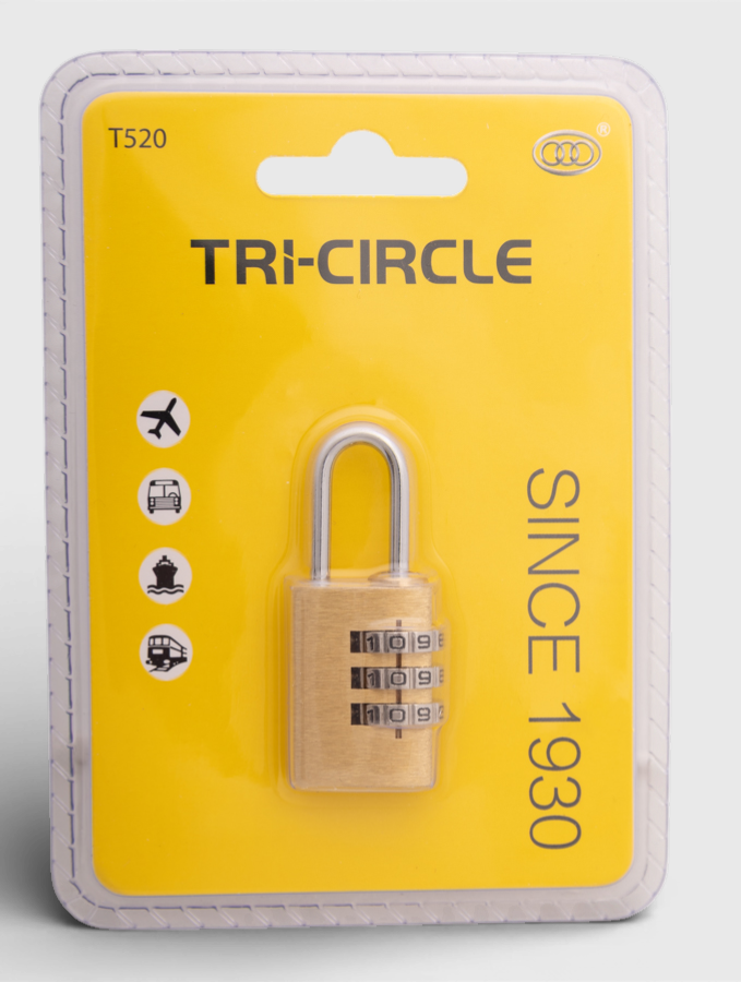 Messing cijferslot van 20mm met een 3-cijferige code. Geproduceerd door Tricircle, een vertrouwd merk sinds 1930. Erkend als het meest verkochte cijferslot wereldwijd.
